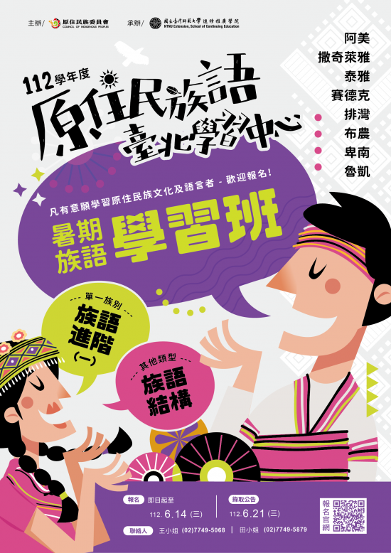 三、 旨案招生對象針對有意從事阿美族、噶瑪蘭族、撒奇萊雅族、泰雅族、太魯閣族、賽德克族、排灣族、布農族、卑南族、魯凱族等族語教學或語言推動工作者。
