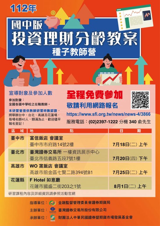 三、 為鼓勵國中教師運用並瞭解教案內容重點及獎勵方式,特舉辦種子教師研習營,希望藉由培養種子教師,再傳授學子正確理財觀念,實際應用於日常生活中,進而提升其金融素養